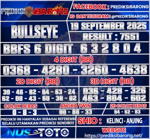 Oleh karena itu tanpa menunggu lama inilah Prediksi BULLSEYE Hari Jumat Tanggal 19 September 2025 Dari Prediksi Barong :