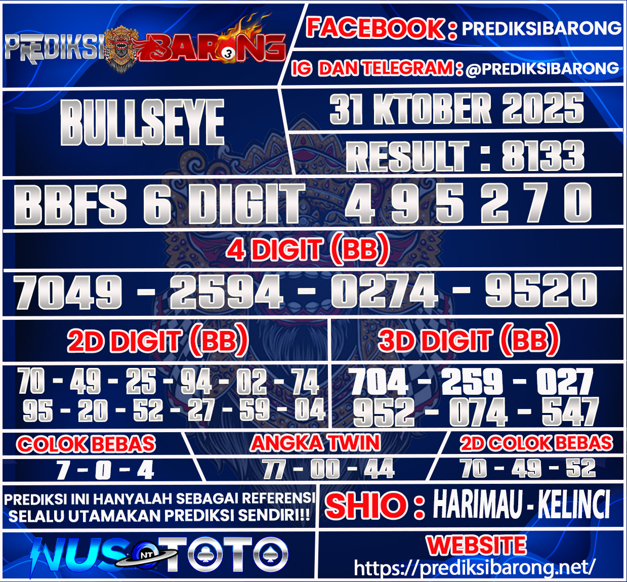 PREDIKSI BULLSEYE Jumat 31 OKTOBER 2025 2025