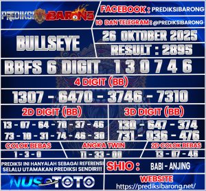 Prediksi Barong » Prediksi Togel BULLSEYE Minggu 26 Oktober 2025