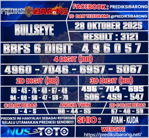 Prediksi Barong » Prediksi Togel BULLSEYE Rabu 29 ktober 2025