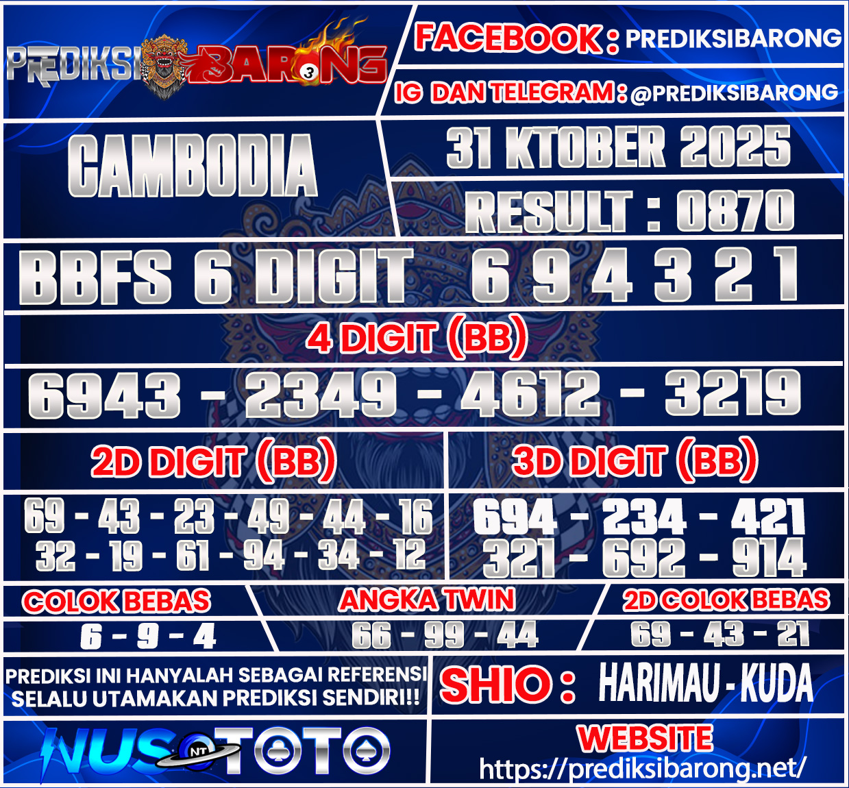 PREDIKSI TOGEL CAMBODIA 31 OKTOBER 2025