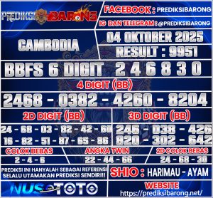 PREDIKSI TOGEL CAMBODIA 04 OKTOBER 2025