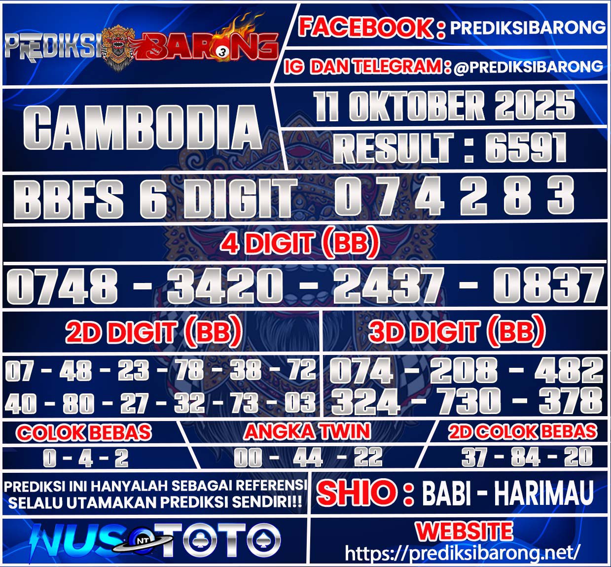PREDIKSI TOGEL CAMBODIA 11 OKTOBER 2025