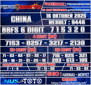PREDIKSI TOGEL CHINA 16 OKTOBER 2025