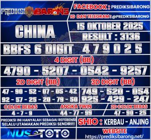 PREDIKSI TOGEL CHINA 15 OKTOBER 2025
