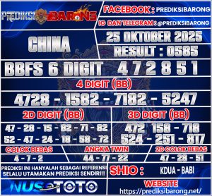 Oleh karena itu tanpa menunggu lama inilah Prediksi CHINA Sabtu tanggal 25 Oktober 2025 Dari Prediksi Barong :