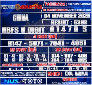 PREDIKSI TOGEL CHINA 04 NOVEMBER 2025