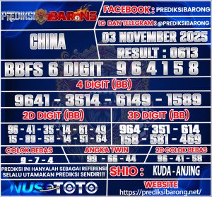 Prediksi Barong adalah layanan prediksi togel yang dirancang khusus untuk membantu para pemain togel dalam meraih keberuntungan. Pada edisi kali ini, kami menyajikan prediksi togel untuk pasar China pada hari Senin 20 Oktober 2025. Dengan analisis mendalam dan metode yang telah teruji, kami berusaha memberikan angka-angka yang memiliki potensi tinggi untuk keluar. Prediksi ini tidak hanya berdasarkan keberuntungan semata, tetapi juga menggunakan data statistik dan pola permainan sebelumnya yang dapat memberikan wawasan lebih bagi para pemain.