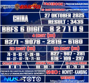 PREDIKSI TOGEL CHINA 27 OKTOBER 2025