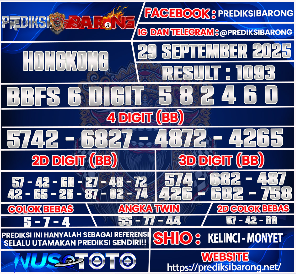 Selamat datang di Situs Prediksi Barong. Prediksi Barong merupakan situs prediksi angka togel yang berasal dari situs togel terpercaya dan teramanah yaitu NUSTOTO. Prediksi Barong sendiri sudah berdiri dari tahun 2018 hingga sekarang dan kualitasnya sudah di uji oleh para ahli paito dan pecinta togel resmi. Hari ini Prediksi Barong telah menyediakan Prediksi HONGKONG Senin 29 September 2025 untuk anda semuanya.