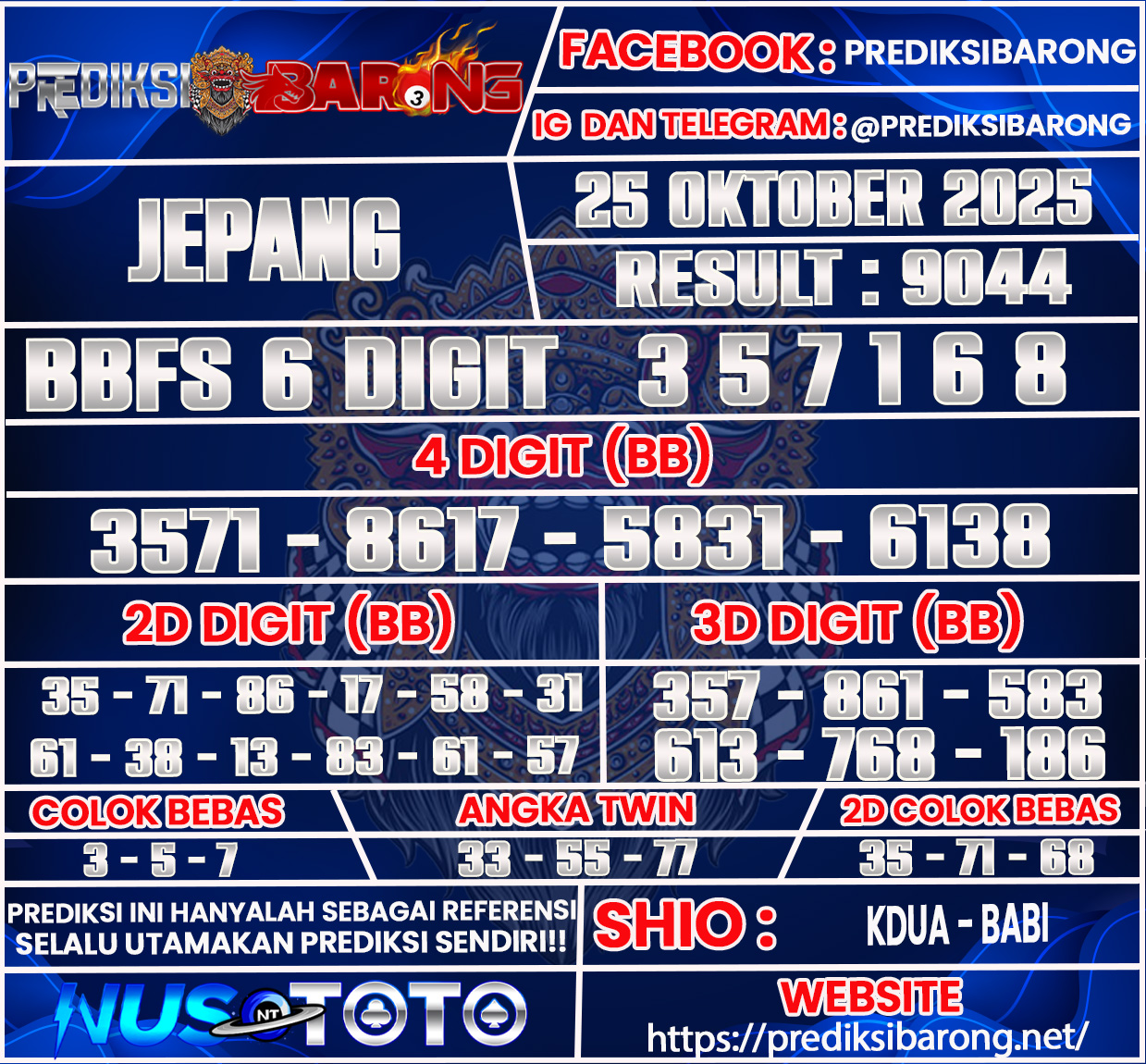 Oleh karena itu tanpa menunggu lama inilah Prediksi Sabtu tanggal 25 Oktober 2025 dari prediksi barong :