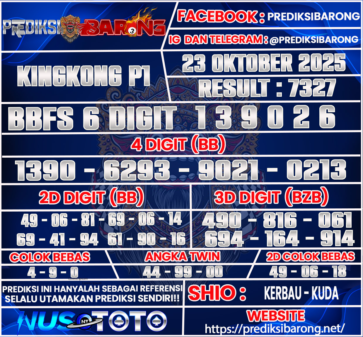 PREDIKSI KINGKONG P1 Kamis 23 OKTOBER 2025