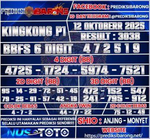 Prediksi Barong » Prediksi Togel KINGKONG P1 Minggu 12 Oktober 2025