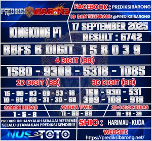 Prediksi Barong » Prediksi Togel KINGKONG P1 Rabu 17 September 2025