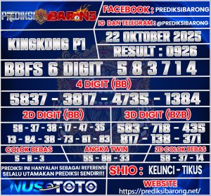 Prediksi Barong » Prediksi Togel KINGKONG P1 Rabu 22 Oktober 2025