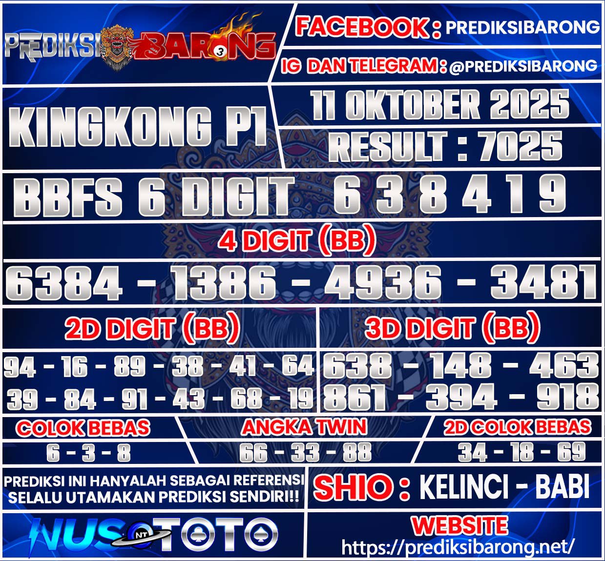 PREDIKSI KINGKONG P1 Sabtu 11 Oktober 2025