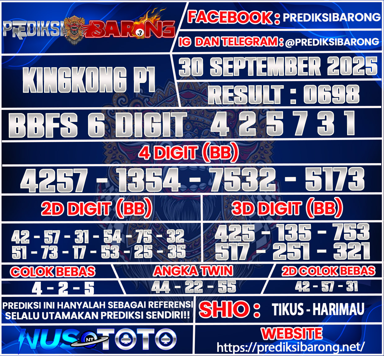 PREDIKSI KINGKONG P1 Selasa 30 September 2025