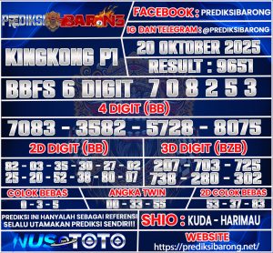 PREDIKSI TOGEL KINGKONG P1 20 OKTOBER 2025