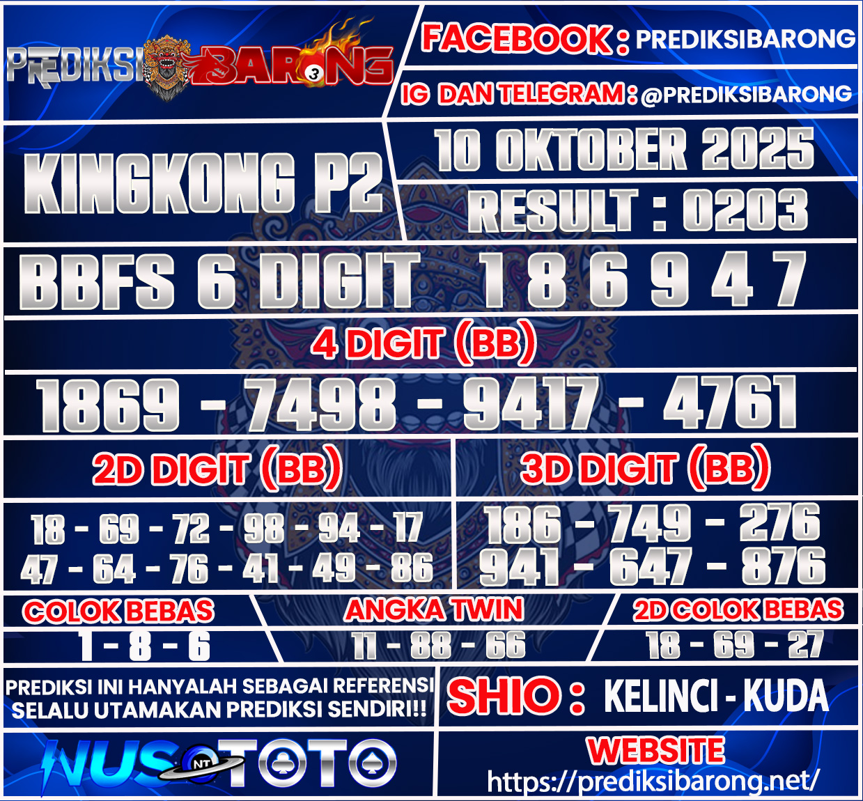 PREDIKSI KINGKONG P2 Jumat 10 Oktober 2025