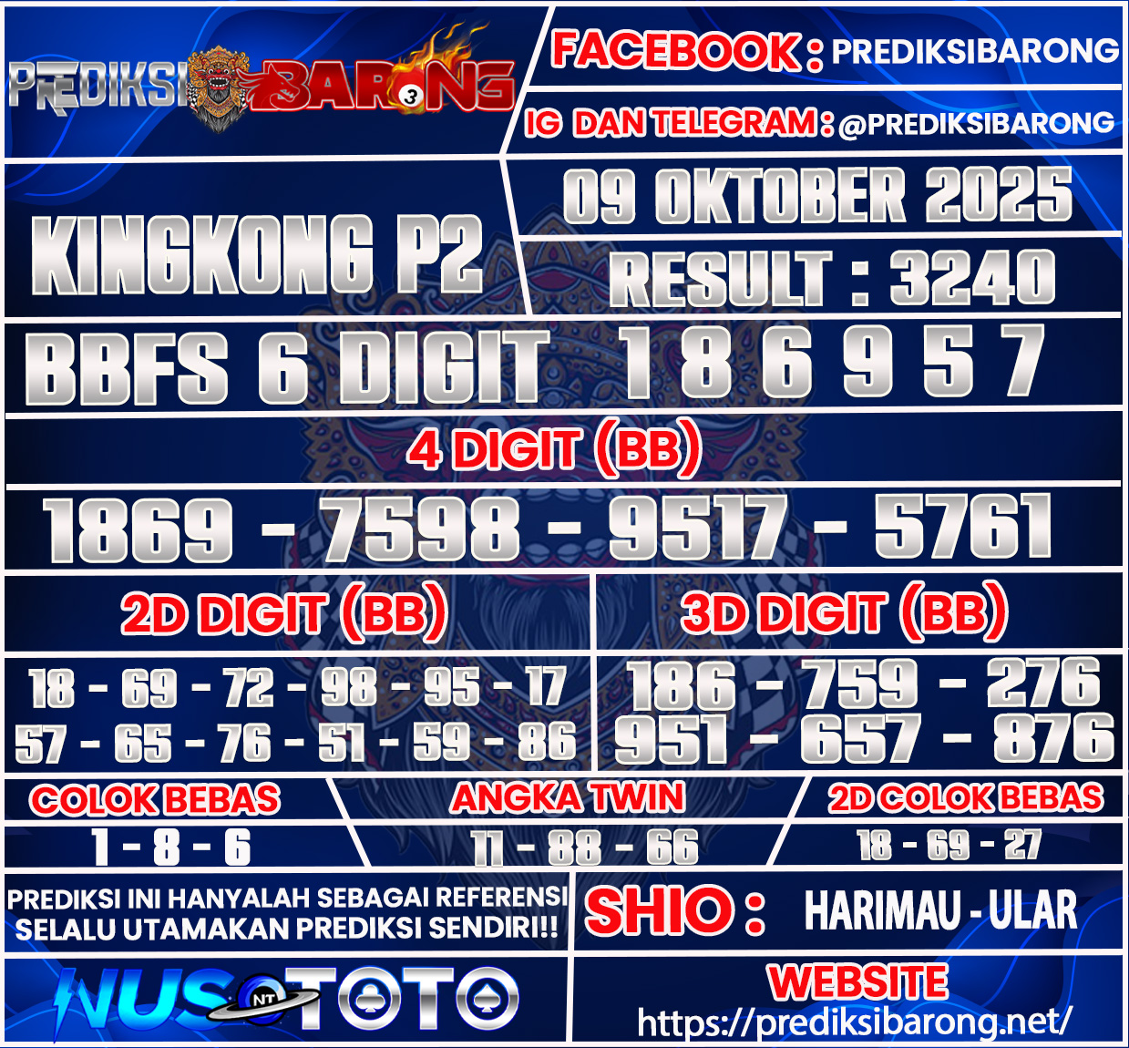 PREDIKSI KINGKONG P2 Kamis 09 Oktober 2025