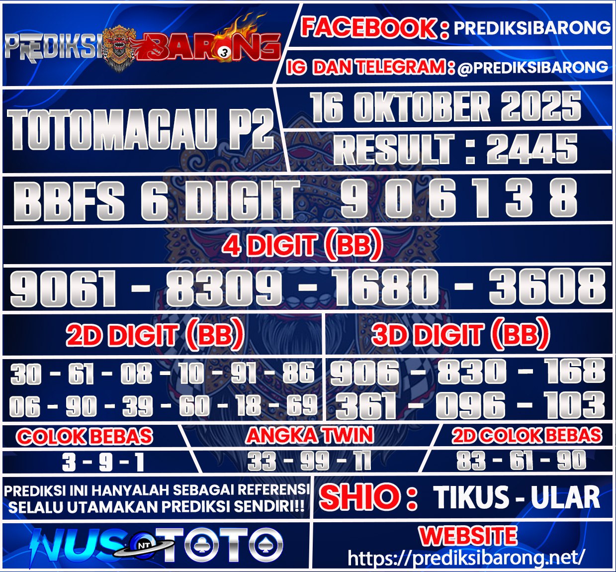 PREDIKSI TOGEL TOTOMACAU P2 16 OKTOBER 2025