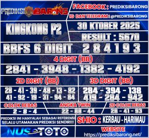 Oleh karena itu tanpa menunggu lama inilah Prediksi KINGKONG P2 Kamis tanggal 30 Oktober 2025 Dari Prediksi Barong :