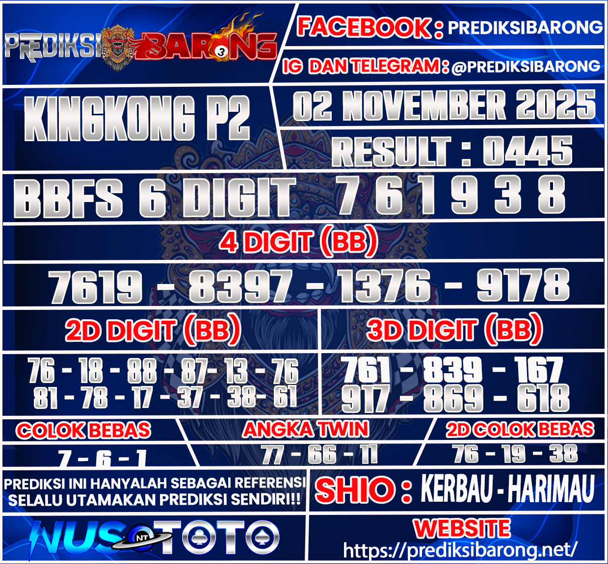 PREDIKSI KINGKONG P2 Minggu 02 November 2025