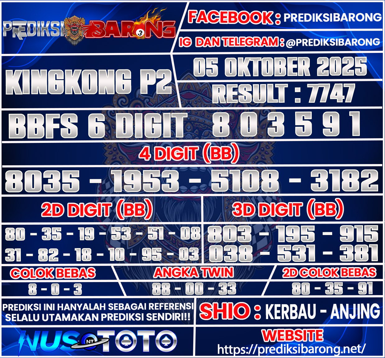 PREDIKSI TOGEL KINGKONG P2 05 OKTOBER 2025
