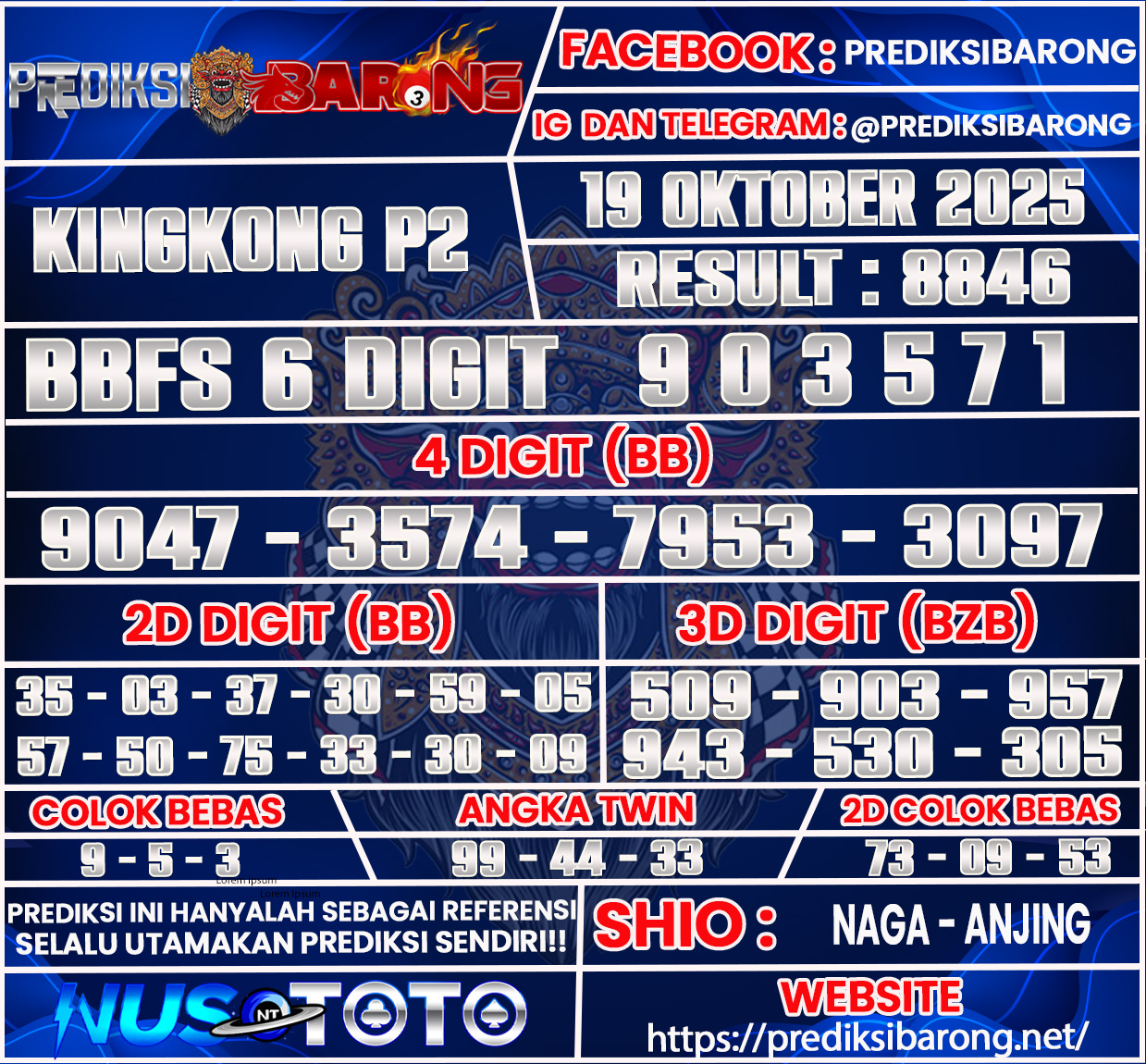 Prediksi Barong » PREDIKSI TOGEL KINGKONG P2 Minggu 19 Oktober 2025