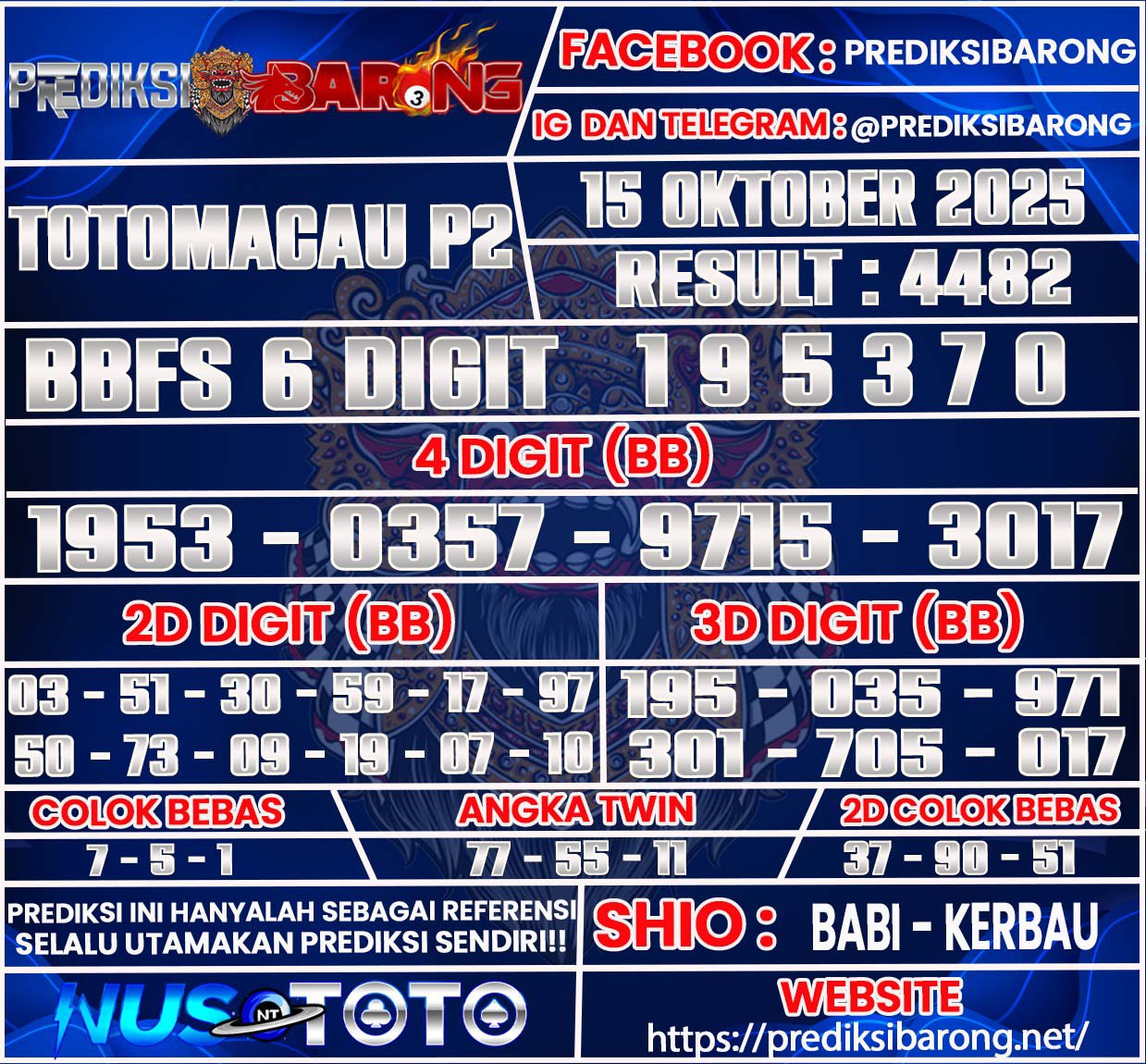PREDIKSI TOGEL TOTOMACAU P2 15 OKTOBER 2025