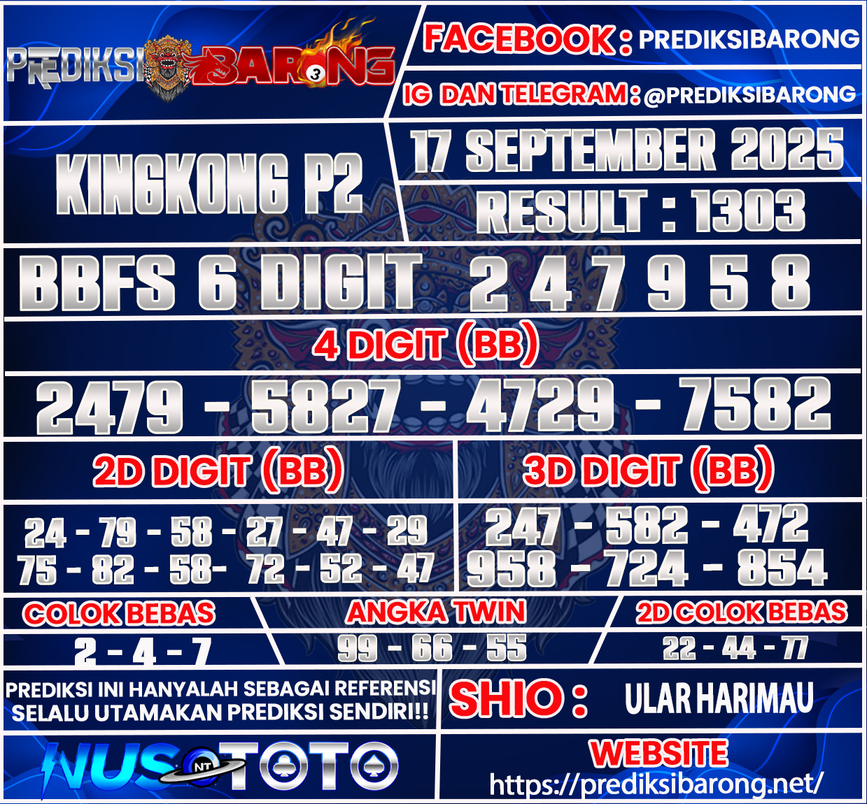 Prediksi Barong » PREDIKSI TOGEL KINGKONG P2 Rabu 17 September 2025