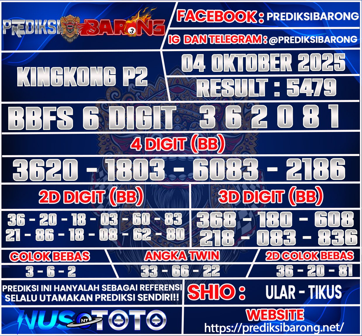 PREDIKSI KINGKONG P2 Sabtu 04Oktober 2025