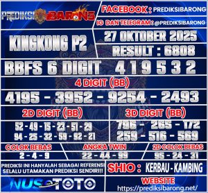 PREDIKSI TOGEL KINGKONG P2 27 OKTOBER 2025