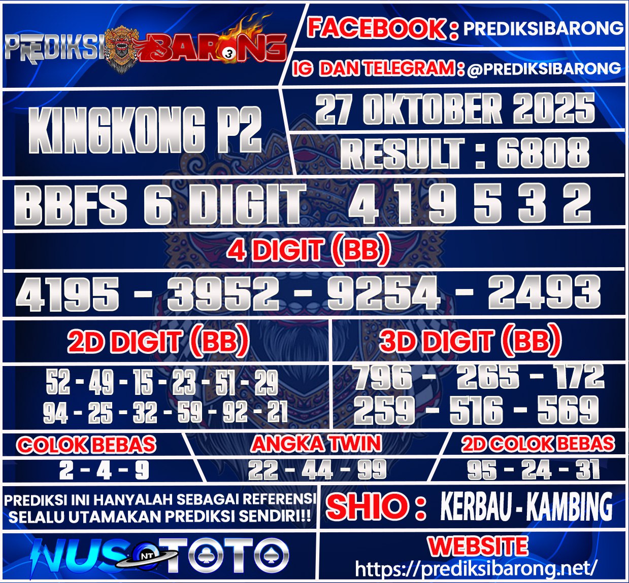 PREDIKSI KINGKONG P2 Senin 27 OKTOBER 2025