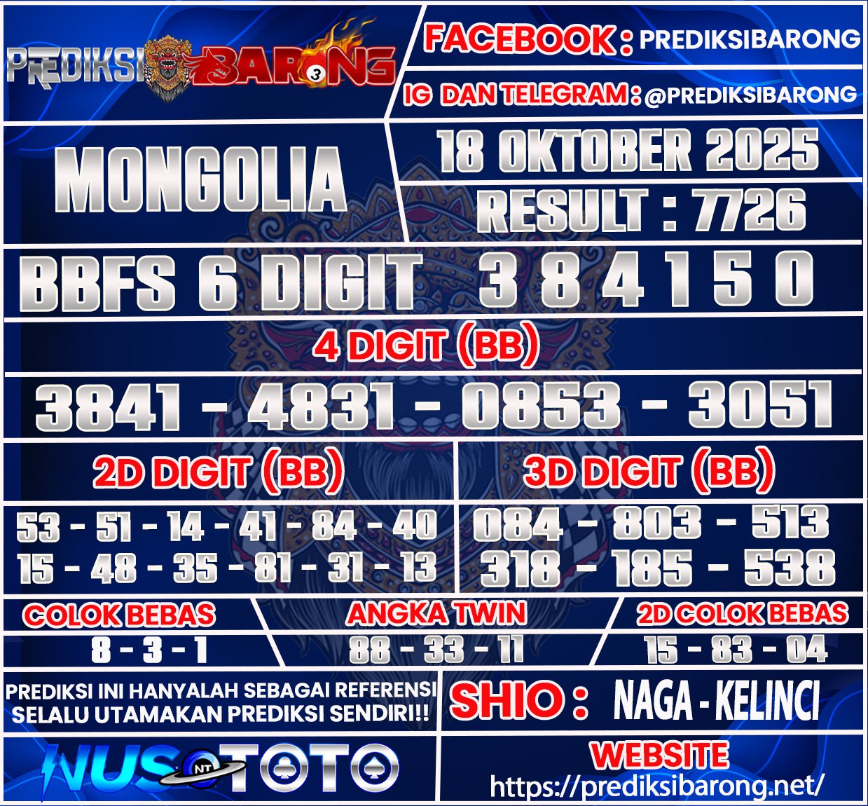 Selamat datang di Situs Prediksi Barong. Prediksi Barong merupakan situs prediksi angka togel yang berasal dari situs togel terpercaya dan teramanah yaitu NUSTOTO. Prediksi Barong sendiri sudah berdiri dari tahun 2018 hingga sekarang dan kualitasnya sudah di uji oleh para ahli paito dan pecinta togel resmi. Hari ini Prediksi Barong telah menyediakan Prediksi Mongolia Sabtu 18 Oktober 2025 untuk anda semuanya.
