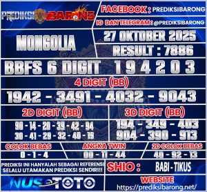 PREDIKSI TOGEL MONGOLIA 27 OKTOBER 2025