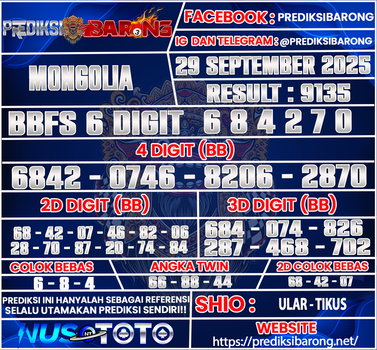 Oleh karena itu tanpa menunggu lama inilah Prediksi MONGOLIA Senin Tanggal 29 September 2025 Dari Prediksi Barong :