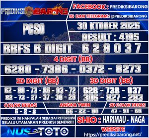Oleh karena itu tanpa menunggu lama inilah Prediksi PCSO Kamis tanggal 30 Oktober 2025 Dari Prediksi Barong :