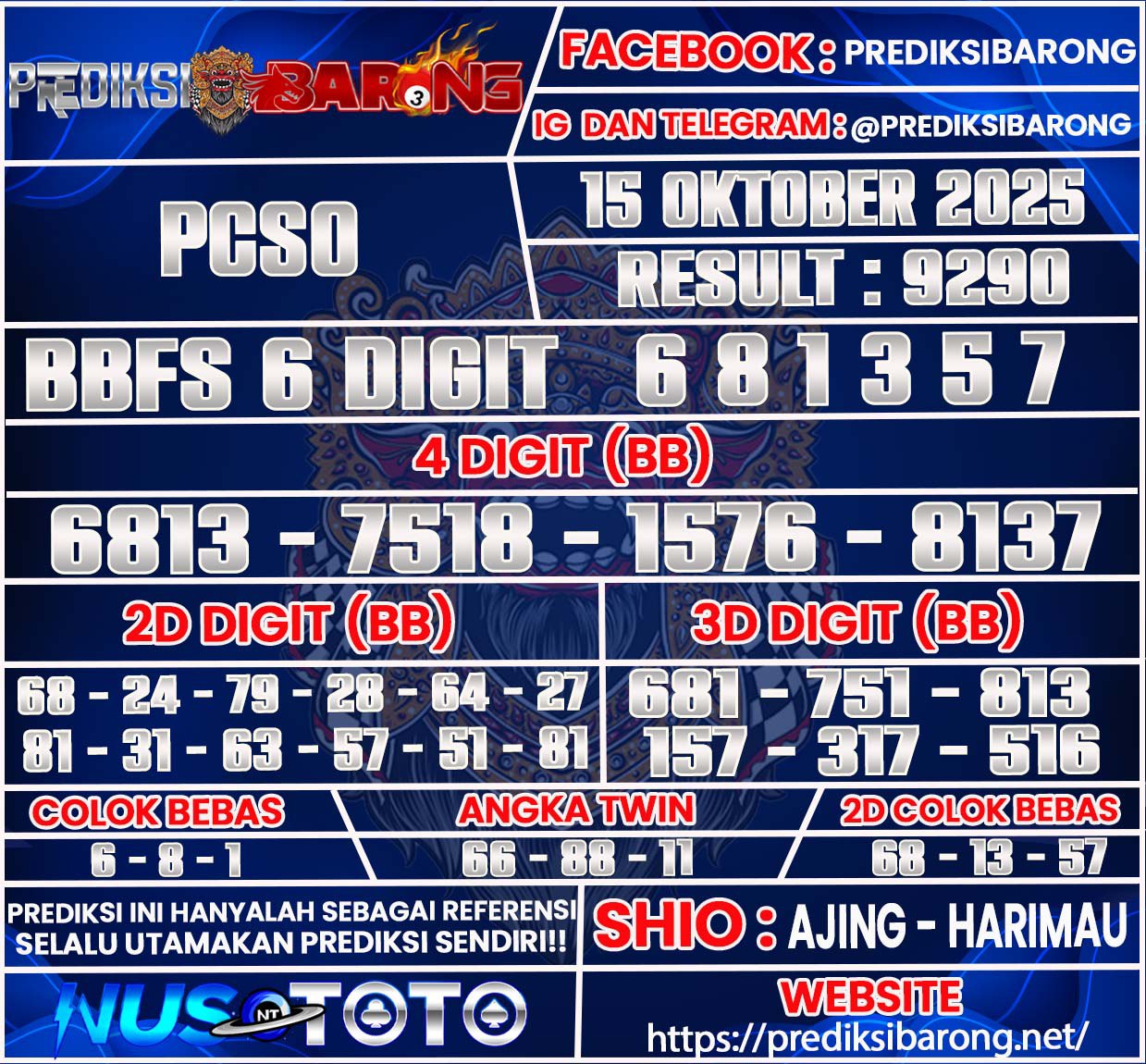 PREDIKSI TOGEL PCSO 15 OKTOBER 2025