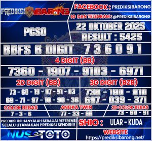 Oleh karena itu tanpa menunggu lama inilah Prediksi PCSO Rabu tanggal 22 Oktober 2025 Dari Prediksi Barong :
