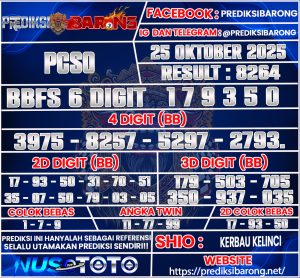 Oleh karena itu tanpa menunggu lama inilah Prediksi PCSO Sabtu tanggal 25  Oktober 2025 Dari Prediksi Barong :