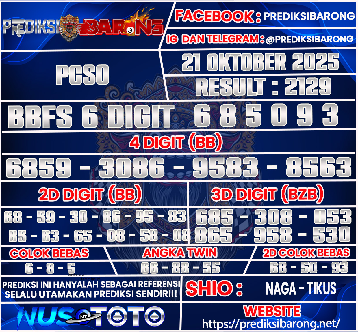 Oleh karena itu tanpa menunggu lama inilah Prediksi PCSO Selasa tanggal 21 Oktober 2025 Dari Prediksi Barong :