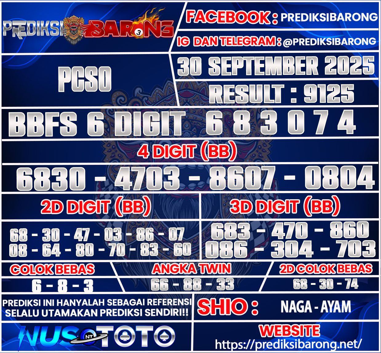 Oleh karena itu tanpa menunggu lama inilah Prediksi PCSO Selasa Tanggal 30 september 2025 Dari Prediksi Barong :