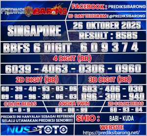 Oleh karena itu tanpa menunggu lama inilah Prediksi SINGAPORE Sabtu tanggal 25 Oktober 2025 Dari Prediksi Barong :