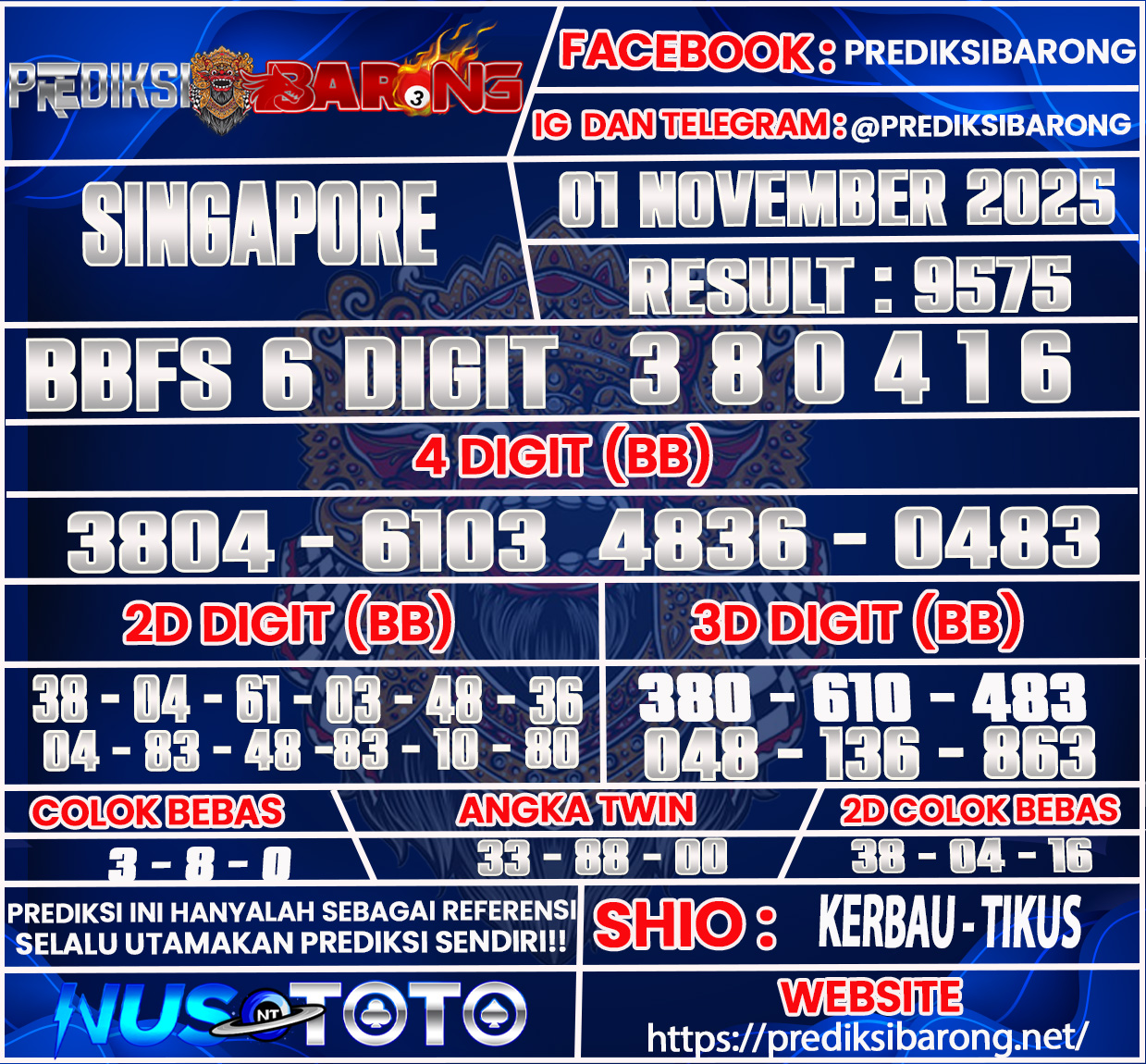 PREDIKSI SINGAPORE Sabtu 01 November 2025