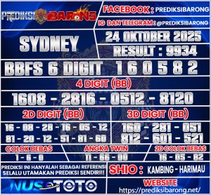 Oleh karena itu tanpa menunggu lama inilah Prediksi SYDNEY Jumat tanggal 24 Oktober 2025 Dari Prediksi Barong :