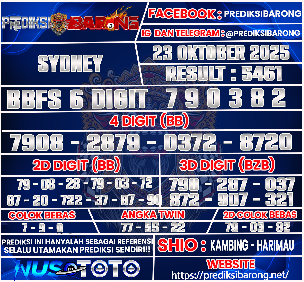 Prediksi Barong » Prediksi Togel SYDNEY Kamis 23 Oktober 2025