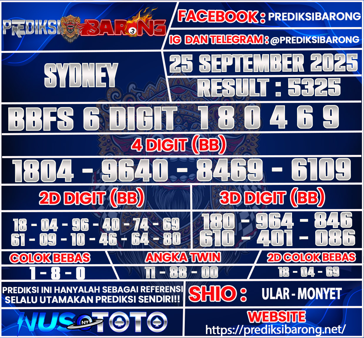 Prediksi Barong » Prediksi Togel SYDNEY Kamis 25 September 2025