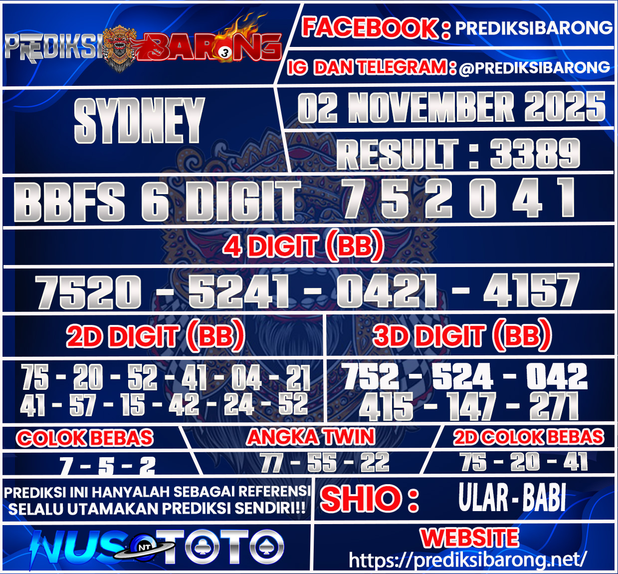 Prediksi Barong » Prediksi Togel SYDNEY Minggu 02 November 2025