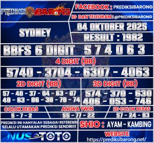 Oleh karena itu tanpa menunggu lama inilah Prediksi SYDNEY Sabtu tanggal 04 Oktober 2025 Dari Prediksi Barong :